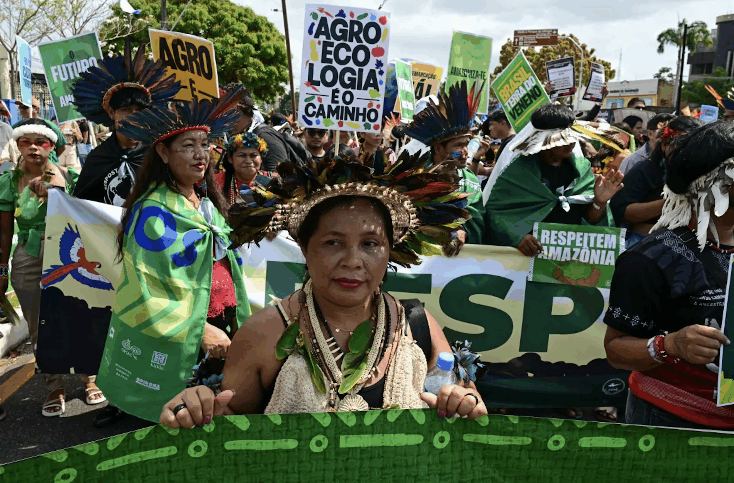 بالنسبة للعديد من الشعوب الأصلية، كانت المناقشات حول أسواق الكربون وائتمانات الغابات تذكيراً بالسبب الذي دفعهم إلى وضع ثقتهم في ترسيم حدود أراضيهم وحمايتها باعتبارها السبيل الأكثر فعالية لحلول المناخ. ركزت رسالتهم في بيليم على العدالة المناخية والانتقال بعيداً عن الوقود الأحفوري، بدلاً من آليات التعويض المالي التي قد تقوض حقوقهم وأراضيهم.